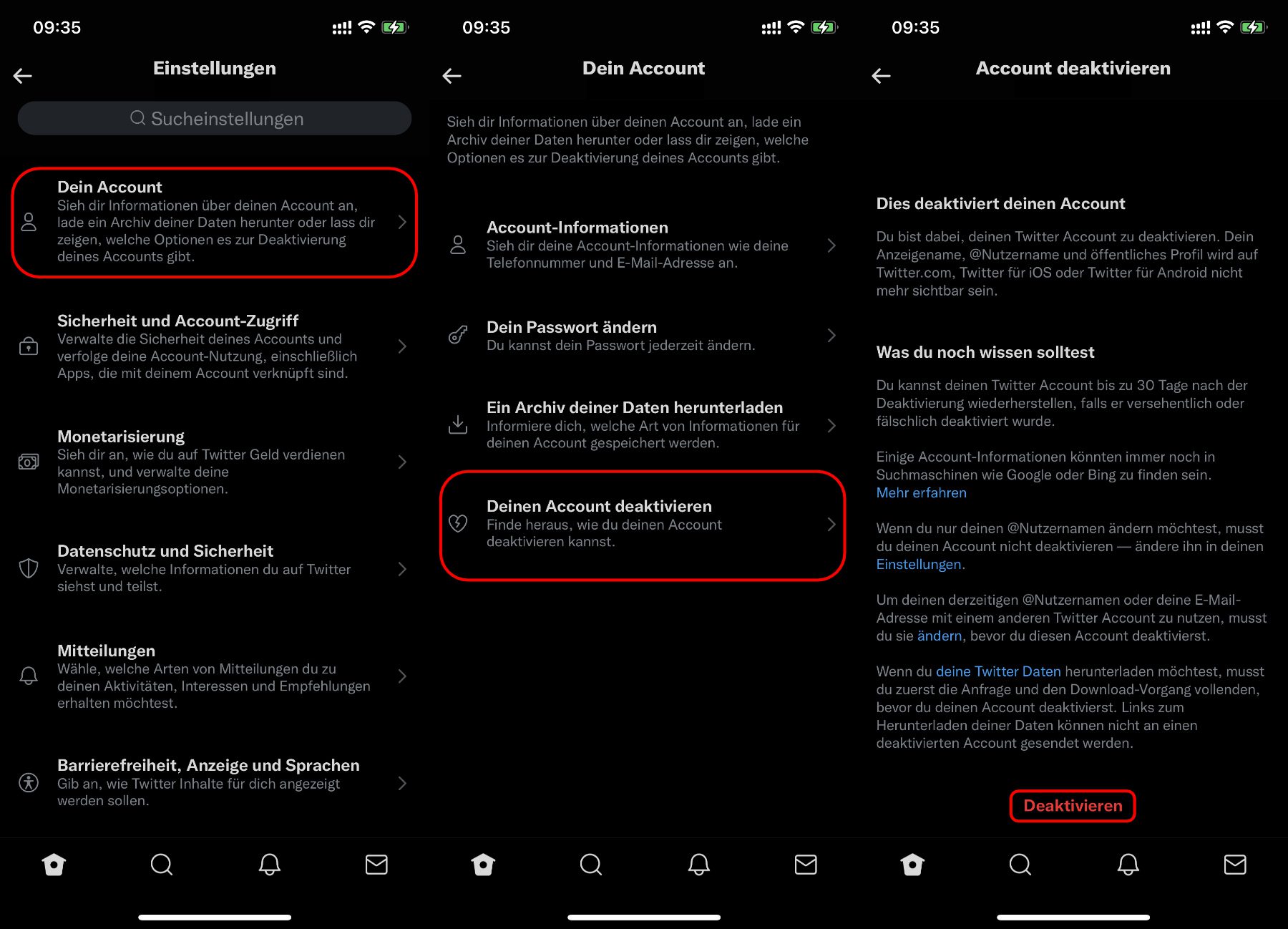 . Tippen Sie auf das Symbol für das Navigationsmenü und dann auf Einstellungen und. Dieser artikel wurde zunächst im november 1721 verteilt. Update im februar achter 2022 1725 uhr et. Twitter löscht also einen Account nicht sofort vollständig sondern lässt ihn erstmal für 30 Tage ruhen falls Sie Ihr Twitterkonto im Desktop-Browser deaktivieren können.